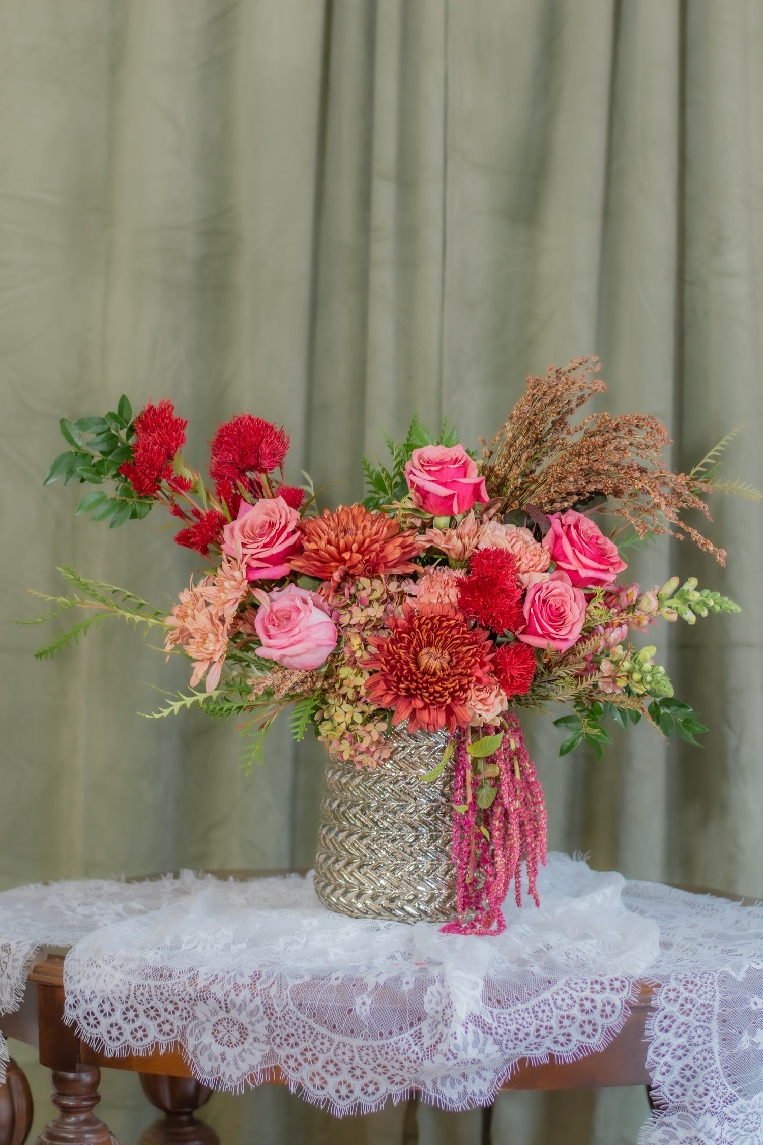 We design with local, in-season flowers and low-waste materials. No floral foam. No excess packaging. Just beautiful, thoughtful blooms.